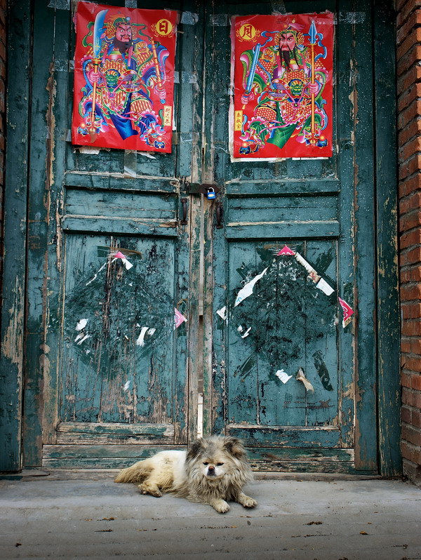 This "little lion" helps to guard the small gate of a courtyard house in a mountain village near Beijing. The little dog gets help from two door gods (simplified Chinese: 门神). Door gods as decoration are placed on each side of the entry to a temple, home or business, as it is believed to keep evil spirits from entering.[Photo/Gerrit Fricke] |