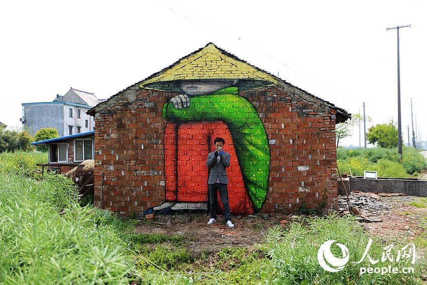 Recently nine fantastic graffiti appeared on the cottages of an ancient town in Shanghai. Julien Malland, the hottest French street artist, combined oriental and western art elements to create these works, attracting many people to take photos. [Photo/People's Daily Online]
