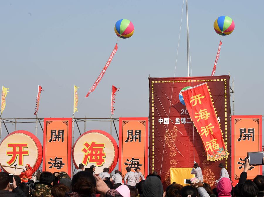 People attend a ritual blessing for good harvest and safe sailing when fishermen go out to the sea in Erjiegou town of Panjin city, Northeast China's Liaoning province, March 15, 2016. [Photo/Xinhua]