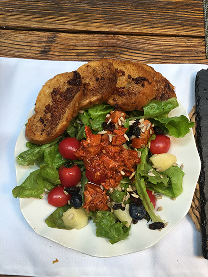 Green-leaf salad with seasonal fruits at Ringing Heights.[Photo provided to China Daily]