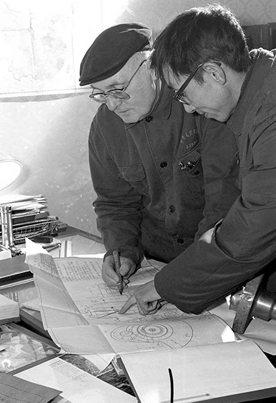 Gerich examines a technical drawing with an engineer. [Photo provided to China Daily] |
