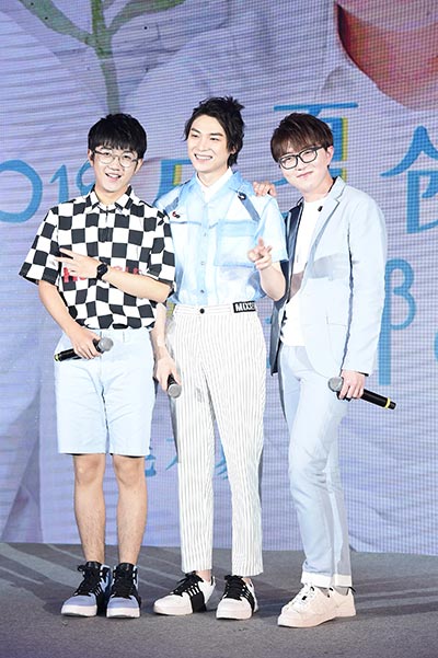 From right: Mao Buyi, champion of The Coming One, Liao Juntao and Zhong Yixuan, both performers on the show, see their music career take off, releasing their debut albums in late May. [Photo provided to China Daily] |