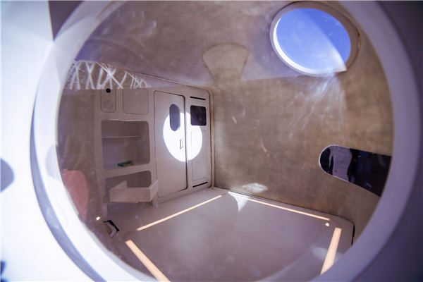 The about 4-square-meter house, named "Mars case", designed by architect Li Hu, is on display at China House Vision exhibition in Beijing. [Photo provided to China Daily] |