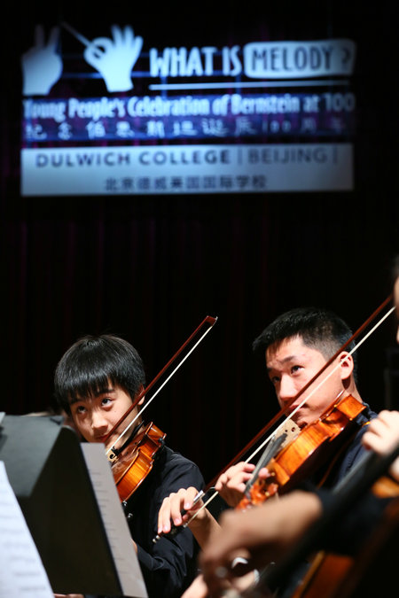 Dulwich College Beijing's Symphony Orchestra presented two concerts for young people designed to give an insight into What is Melody? on Oct 23-24, Beijing. [Photo provided to chinadaily.com.cn] |