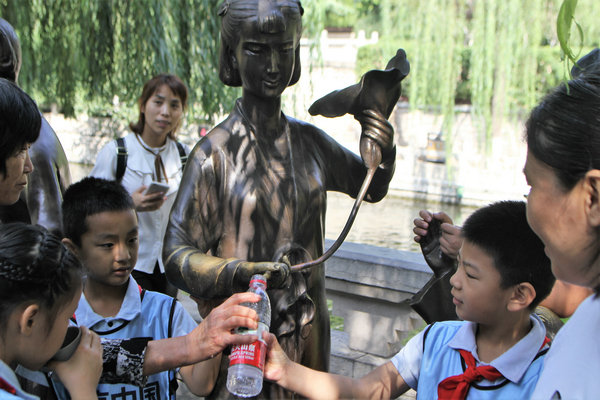 A modern innovation on Jinan's ancient spring culture is that people can scan QR codes at 100 drinking fountains around the city and get 250 milliliters of purified spring water pumped from the Shunjing Well. Each person can scan the fountains up to 10 times a day.