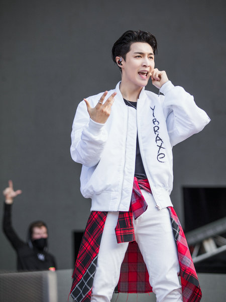Singer-songwriter Zhang Yixing sings onstage at the Lollapalooza music festival this August in Chicago.[Photo provided to China Daily] |