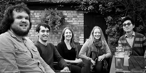 Hu Xuhui (right) and his classmates while pursuing his second PhD in linguistics at Cambridge. [Photo provided to China Daily]