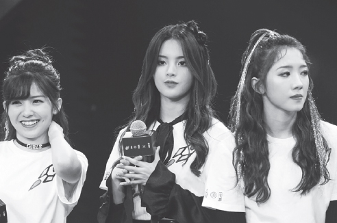 From left: Lai Meiyun, Yang Chaoyue and Meng Meiqi comprise the group Rocket Girls 101. [Photo provided to China Daily] |