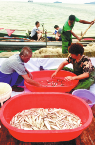A fishing crew sorts catches on Taihu Lake. Wuxi has recovered from pollution that left a million people without drinking water a decade ago. [Photo by Eric Nilsson/China Daily and China Daily New Media Center] |