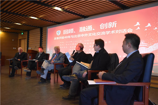 A group of scholars recently discussed the cultural exchanges that have taken place in Beijing over the past 40 years' reform and opening-up. The scholars of social sciences and the humanities were participating in the academic dialogue Retrospect, Connection and Innovation, held at the Beijing Foreign Studies University.