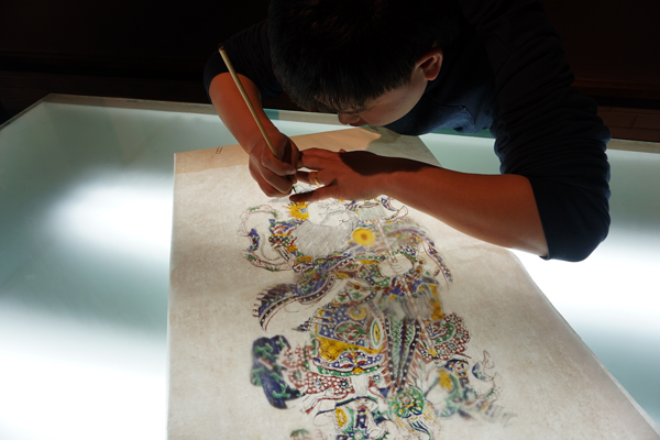 A painter colors a New Year picture at the Yangliuqing New Year Painting Museum on Dec 19, 2018 in Tianjin. [Photo provided to chinadaily.com.cn]
