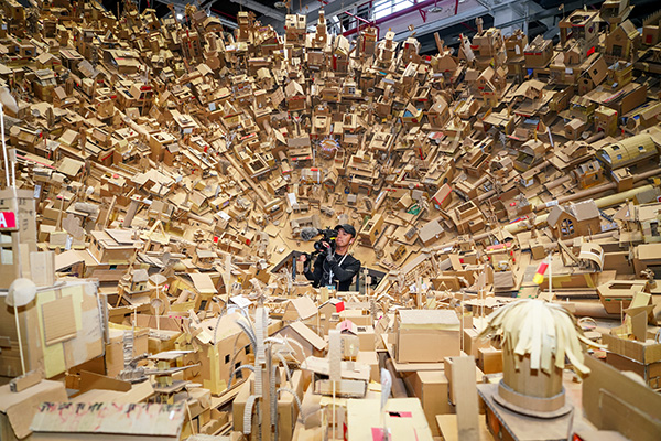 The Cosmopolis #1.5: Enlarged Intelligence in Chengdu features Filipino artist couple Alfredo and Isabel Aquilizan's installation, Here, There, Everywhere, a miniature community made of recycled cupboards. [Photo provided to China Daily] |