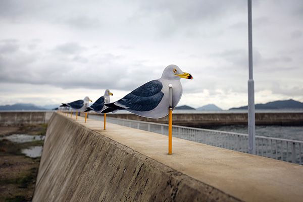 An installation, Seagull Parking Lot, by Japanese artist Takahito Kimura on the island of Megijima, one of the 12 islands that the Setouchi Triennale 2019 will use for showing artists' works. [Photo provided to China Daily] |