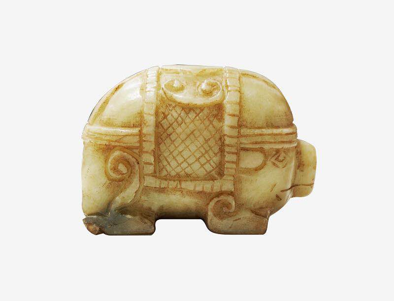 A jade pig sculpture from the Qing Dynasty (1636-1912), which is 9.5 centimeters long, 5.2 centimeters wide and 6.3 centimeters tall, is displayed at Chongqing China Three Gorges Museum from Jan 29 to Mar 3. [Photo provided to chinadaily.com.cn]