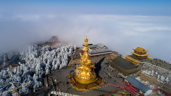 Emei Mountain's main peak, the Golden Summit. LI JIJUN/YUAN SHIHONG/FOR CHINA DAILY