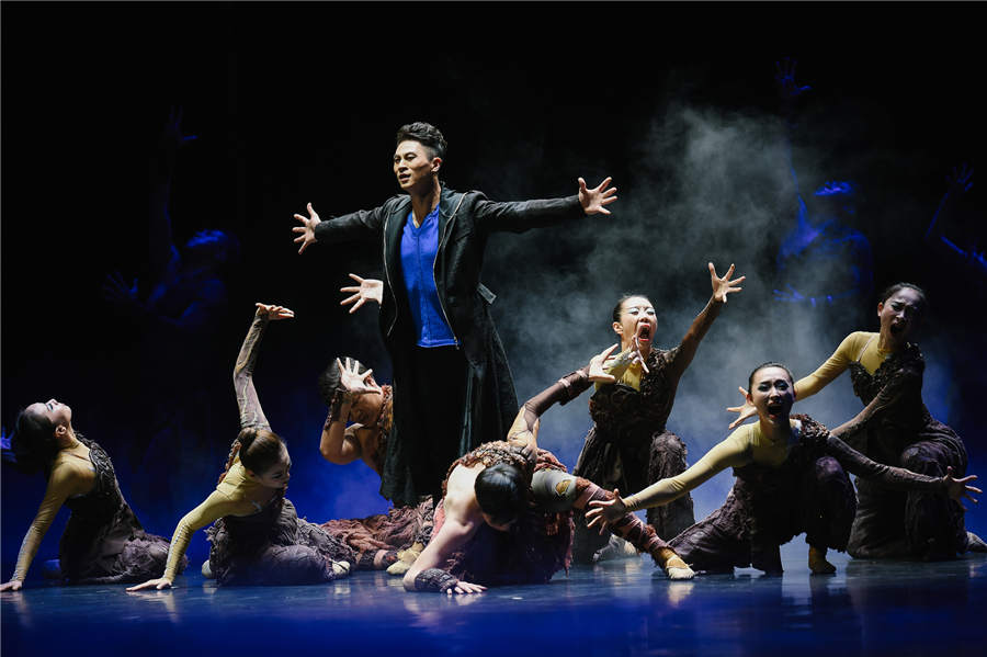 Artists perform on stage during the Chinese drama dance show named "To Meet the Grand Canal" in Moscow, Russia, on Aug 16, 2019. [Photo/Xinhua]