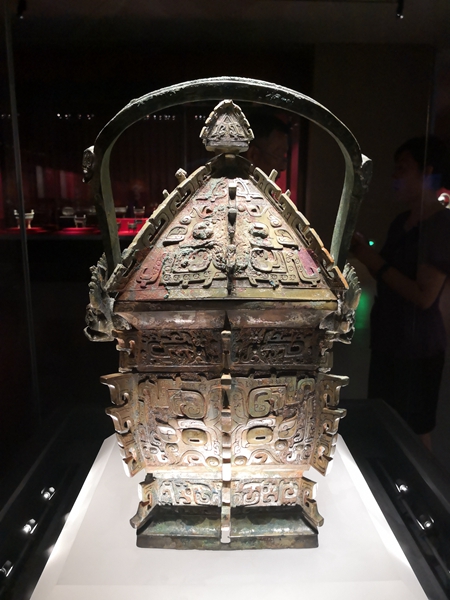 Yi Fang Yi, another wine vessel with a handle, which is rare, also from the Western Zhou era.[Photo by Sun Ruisheng/China Daily] |