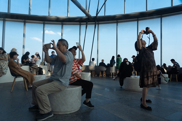 Located on the 52nd story of Shanghai Tower, the newly opened Duoyun Books, a supporting venue for the fair, is popular among readers.[Photo by Gao Erqiang/China Daily] |