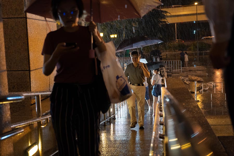 More than 700 people brave the rain and strong winds and visit the Shanghai Museum on Aug 9. [PHOTO BY GAO ERQIANG/CHINA DAILY] |
