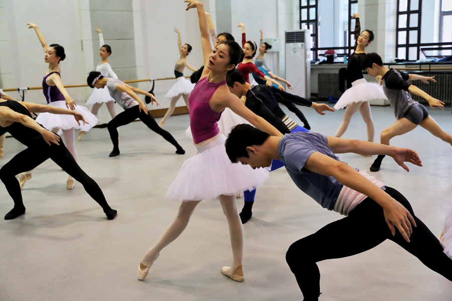 Ballet dancers with the National Ballet of China rehearse George Balanchine's classic ballet, Jewels, which will be staged in Beijing from Sept 12-14. [Photo by JIANG DONG/CHINA DAILY] |