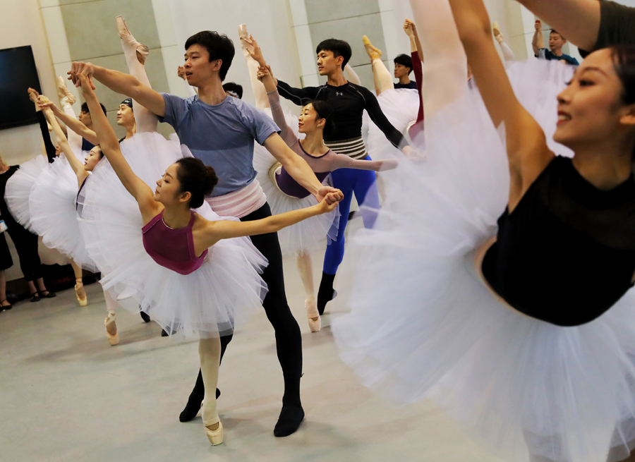 Ballet dancers with the National Ballet of China rehearse George Balanchine's classic ballet, Jewels, which will be staged in Beijing from Sept 12-14. [Photo by JIANG DONG/CHINA DAILY] |