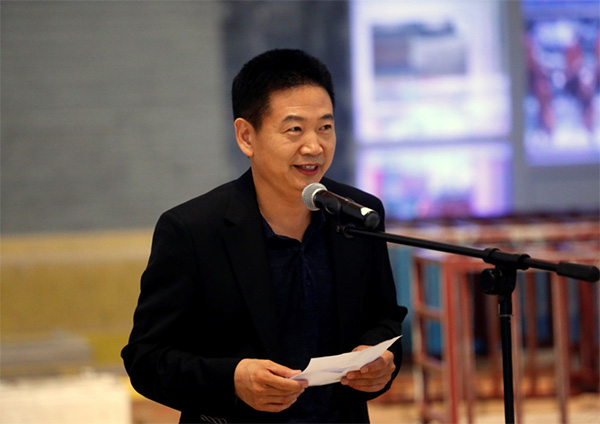 Zhang Zikang, curator of the CAFA Art Museum, speaks at the closing ceremony for Argentine artist Leandro Erlich's The Confines of the Great Void exhibition at the CAFA Art Museum in Beijing, Aug 23, 2019. [Photo provided to chinadaily.com.cn] |