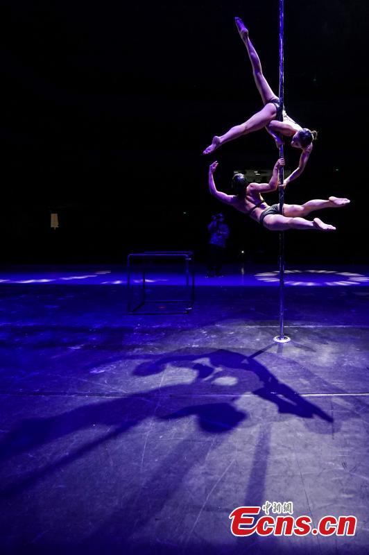 Photo taken on Aug 28, 2019 shows participates compete in the qualifying round of China's national pole dance team in Tianjin. Twelve dancers selected through the competition will join current 11 members of the national team for the World Pole Sport & Fitness Championships 2019 to be held in October in Ireland. [Photo/China News Service]