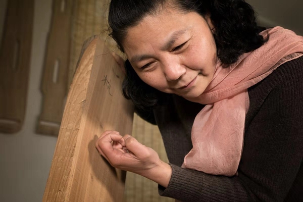 Ji Lijuan, a guqin player and maker, shows how she selects wood and makes the instruments.[Photo provided to China Daily]