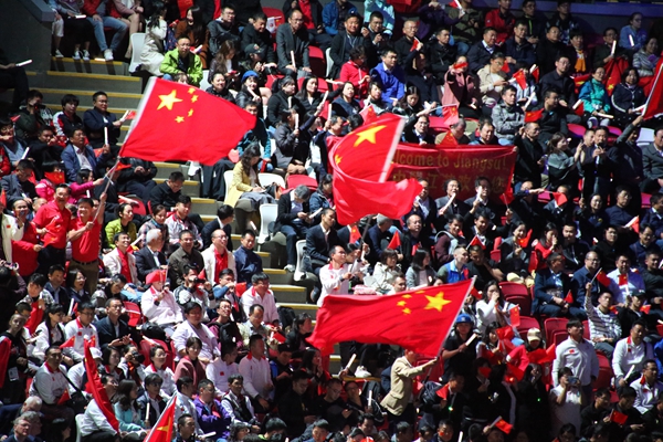 Members of the Chinese delegation cheer at the closing ceremony of the 45th WorldSkills Competition in Kazan, Russia, last month.[Photo provided to China Daily]