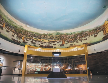 The first exhibition hall covers 2,450 square meters and has six parts. It systematically shows the history and prosperity of the Thirteen Hongs, including foreign trade, Hong merchants and other historical landmark trade events.
