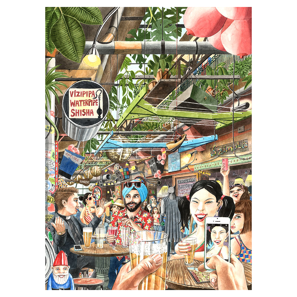 Paintings by Barakonyi Zsombor capture the cosmopolitan quality and peculiar timelessness of urban living and Borsi Flora's photos provide a glimpse of the innovative characteristics of Hungary through a fantasy, dreamlike world.