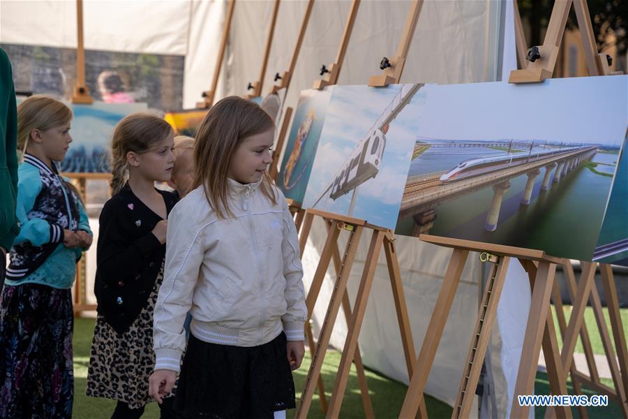 Children view photographic works themed "Today's China" during the 2019 Chinese Cultural Festival and "China Day" event in Stockholm, capital of Sweden, Sept 14, 2019. [Photo/Xinhua]
