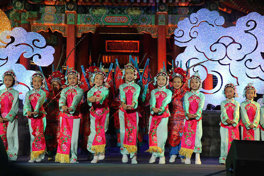 Young artists perform Peking Opera at the Summer Palace. [Photo by Jiang Dong/China Daily] |
