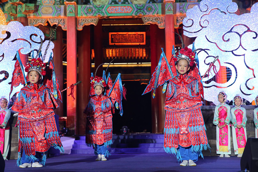 Performances of Peking Opera and Kunqu Opera graced the grounds, and more than 2,000 lamps lit up the lakes to render a touch of grandeur and tranquility. [Photo by Jiang Dong/China Daily]