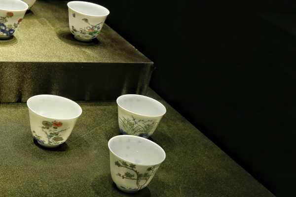 A set of ceramic cups with decorative patterns reflecting 12 varieties of flowers from the reign of Kangxi (1662-1722) in the Qing period.[Photo by Jiang Dong/China Daily] |