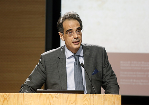 Franco Amadei, cultural counselor of the Italian embassy in China, addresses those at the opening ceremony of Leonardo and his Outstanding Circleheld at the CAFA Art Museum in Beijing, Sept 12, 2019. [Photo provided to chinadaily.com.cn]