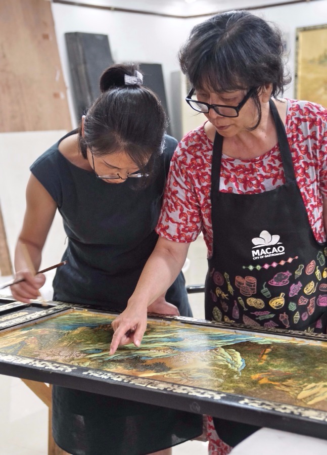 Hu Xin (R) explains the application of lacquer painting pigment to a student at Beijing Gold Lacquer Inlaid Co., Ltd. in Beijing, capital of China, Sept. 19, 2019. Gold inlaid lacquer, an integral part of painted and inlaid lacquer, is among the eight Beijing-style handicrafts. Gold inlaid lacquer ware combines the intricate skills of carving, filling, whetting, inlaying and painting. It features a gold lacquered surface inlaid with various gems and other exotic materials. Hu Xin, a 62-year-old senior arts and crafts master of Beijing, has been dedicated to designing and creating lacquer wares for about 43 years. The art has received a new lease on life thanks to the efforts made by Hu to innovate technical methods, especially in gold lacquer inlaid painting techniques. Dozens of her gold inlaid lacquer works have received a series of accolades at home and abroad, including gold award of the Hundred Flowers of Chinese Arts and Crafts. To better promote the art, Hu has trained ten apprentices, some of whom have been recognized as the representative inheritors of gold lacquer inlaid painting techniques. Apart from that, she has been committed to passing on the craft since 2015 by teaching students gold lacquer inlaid production techniques in a specialist course jointly launched by Beijing Gold Lacquer Inlaid Co., Ltd. and Beijing Senior Technical School of Arts and Crafts. [Photo/Xinhua] |