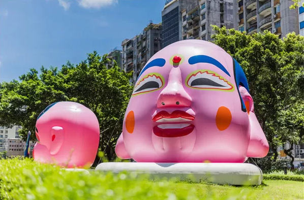 The sculpture artwork titled Happy big heads. Public arts are spread over Macao during the Art Macao event. [Photo/Artron.net]