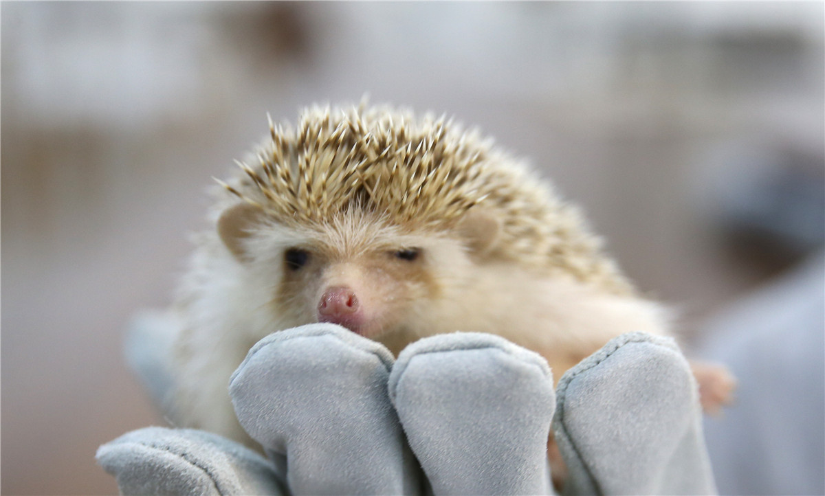 a hedgehog at CAVE, a animal themed cafe in Beijing. [Photo by Zou Hong/China Daily] |