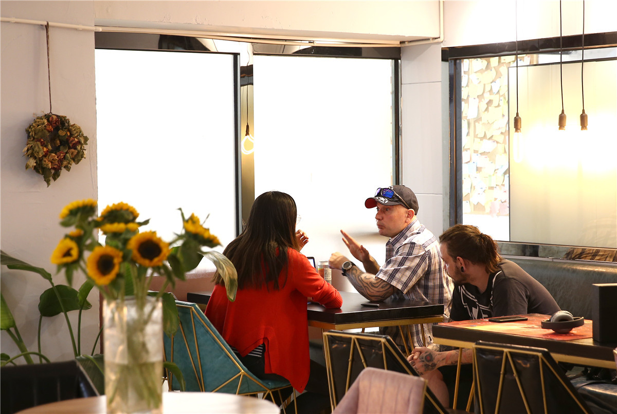 Customers talk and enjoy their evening time at Visitant Bay Coffee on a Friday night. [Photo by Zou Hong/China Daily] |