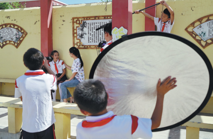 Children make a film with professional reflector and radio microphone. [Photo/Xinhua]