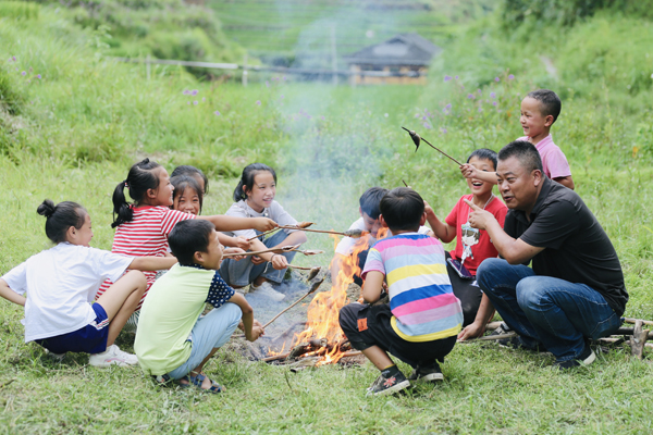 Documentary director Chen Xiaoqing travels Guangxi Zhuang autonomous region to lead a class as a Chinese teacher and interact with local primary school students in the new season of the show, A-Class. [Photo provided to China Daily] |