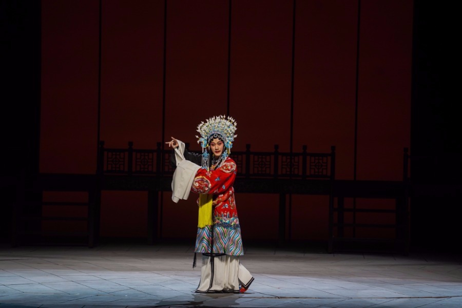 A performer acts in an original modern Kunqu opera show depicting the early life of Peking opera master Mei Lanfang in Nanjing, capital of East China's Jiangsu province, Oct 9, 2019.[Photo/Xinhua]