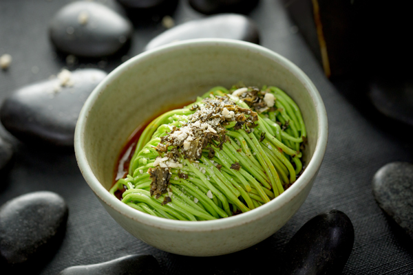 Handmade Spinach Noodles with Dandan Sauce. [Photo provided to China Daily] |