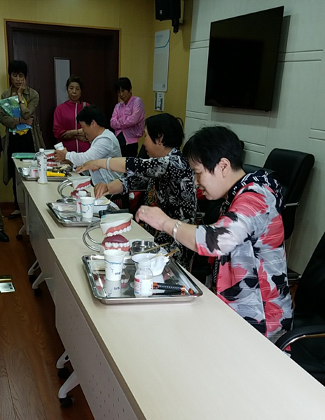 Applicants for caregiving positions undergo training at a community school in Pujiang town, Shanghai, in June. [Photo provided to China Daily] |