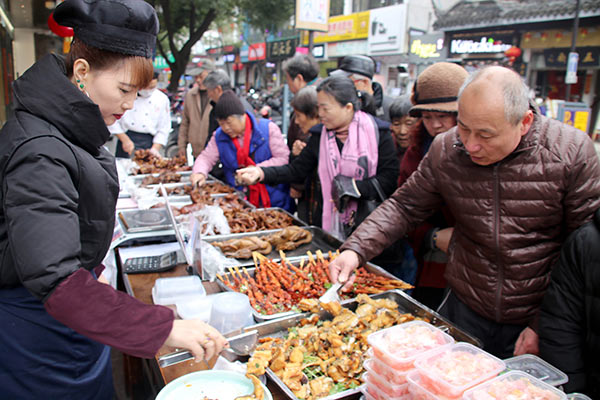 The meats are lifted from the pot and drained, then cooled and sold. [Photo provided to China Daily] |