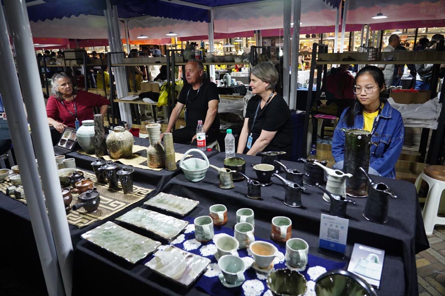 Artists display porcelain works during a porcelain fair in Jingdezhen, East China's Jiangxi province, Oct 17, 2019. An autumn porcelain fair opened Thursday in Jingdezhen, and will last for three days. [Photo/Xinhua]