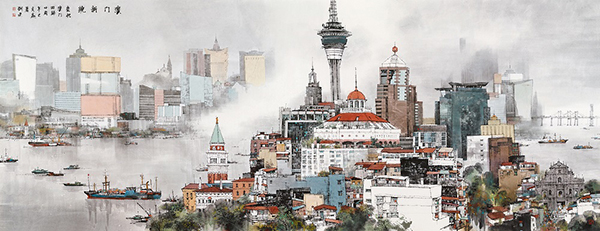 Works by painters from across the country are on show to mark the 20th anniversary of the establishment of the Macao Special Administrative Region. [Photo provided to China Daily]
