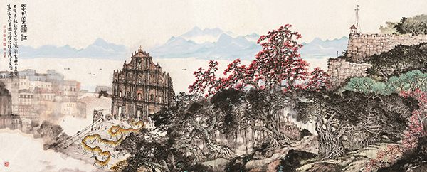 Works by painters from across the country are on show to mark the 20th anniversary of the establishment of the Macao Special Administrative Region. [Photo provided to China Daily]