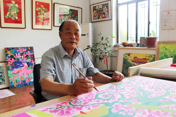 Farmer-turned-painter Ma Jiqing has painted works portraying the development of the country's rural areas by depicting scenes of rural life for 50 years. [Photo provided to China Daily] |